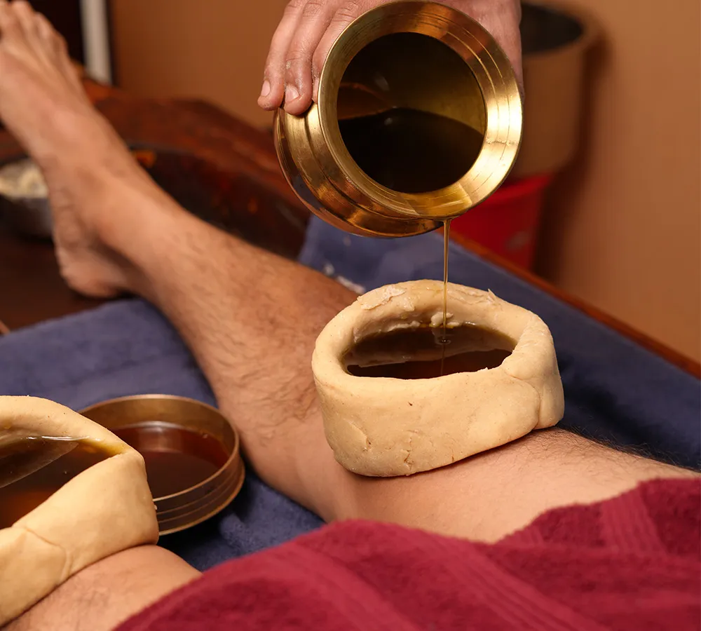 Janu Vasti is a therapeutic Ayurvedic treatment where warm medicated oil is retained in a dough ring placed over the knee joint. It helps relieve knee pain, lubricate the joints, reduce stiffness, and improve mobility. This treatment is highly beneficial for arthritis, osteoporosis, and chronic knee-related conditions.